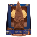 Delicie-se com o tablete de chocolate ao leite estampado com o Brasão de Hogwarts e leve para casa uma pelúcia exclusiva do Chapéu Seletor.